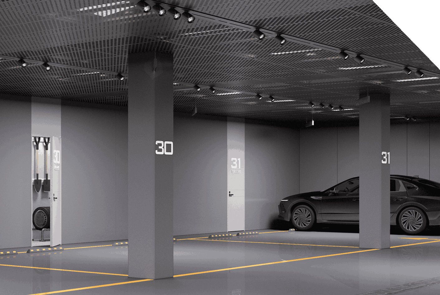 На подземном этаже расположены келлеры-кладовые, для хранения запчастей авто, инструментов и сезонных вещей
